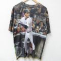 XL★古着 半袖 Tシャツ メンズ MLB ニューヨークヤンキース デレクジーター 2 フォトプリント 全面プリント クルーネック 黒 ブラック メジャーリーグ ベースボール 野球 【spe】 25may26 中古
