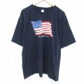 XL★古着 半袖 Tシャツ メンズ 星条旗 大きいサイズ コットン クルーネック USA製 紺 ネイビー 25may26 中古