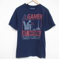 【商品名】 XL★古着 半袖 Tシャツ メンズ ゲーマー コットン クルーネック 紺