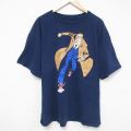 XL★古着 半袖 Tシャツ メンズ オオカミ クマ 大きいサイズ コットン クルーネック 紺