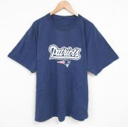 XL★古着 半袖 Tシャツ メンズ NFL ニューイングランドペイトリオッツ 大きいサイズ コットン クルーネック 紺 アメフト スーパーボウル