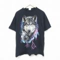 XL★古着 半袖 Tシャツ メンズ オオカミ コットン クルーネック 黒