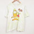 【50%OFF】XL★古着 半袖 Tシャツ メンズ ガーフィールド 大きいサイズ コットン クルーネック 薄黄他 イエロー タイダイ 25jun07 中古