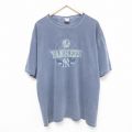 【商品名】 XL★古着 半袖 Tシャツ メンズ MLB ニューヨークヤンキース 大きいサイズ コットン クルーネック 薄紺 メジャーリーグ ベースボール 野球