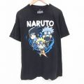 XL★古着 半袖 Tシャツ メンズ アニメ NARUTO ナルト疾風伝 大きいサイズ クルーネック 黒