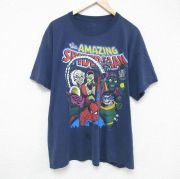 XL★古着 半袖 Tシャツ メンズ スパイダーマン 大きいサイズ クルーネック 紺
