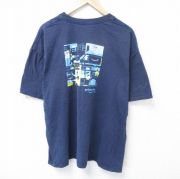 XL★古着 半袖 Tシャツ メンズ BACK 大きいサイズ コットン クルーネック 紺