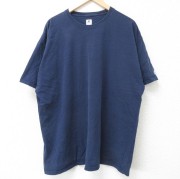 XL★古着 ラッセル 半袖 Tシャツ メンズ 無地 クルーネック 紺