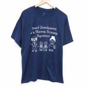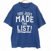 XL★古着 半袖 Tシャツ メンズ メッセージ コットン クルーネック 紺