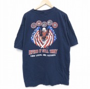 XL★古着 半袖 Tシャツ メンズ USAロゴ コットン クルーネック 紺