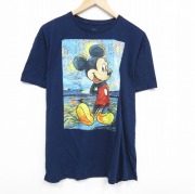 XL★古着 半袖 Tシャツ メンズ ディズニー ミッキー コットン クルーネック 紺