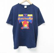 XL★古着 半袖 Tシャツ メンズ レスリング コットン クルーネック 紺