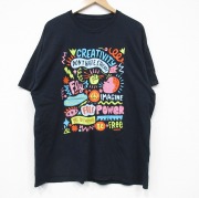 XL★古着 半袖 Tシャツ メンズ メッセージ 大きいサイズ クルーネック 黒