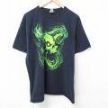 XL★古着 半袖 Tシャツ メンズ ドラゴン コットン クルーネック 黒