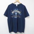 XL★古着 半袖 Tシャツ メンズ SEA 大きいサイズ コットン クルーネック 紺