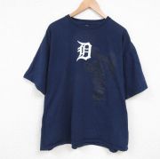 XL★古着 半袖 Tシャツ メンズ MLB デトロイトタイガース 大きいサイズ コットン クルーネック 紺 メジャーリーグ ベースボール 野球