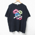 【商品名】 XL★古着 半袖 Tシャツ メンズ 口唇 大きいサイズ コットン クルーネック 黒
