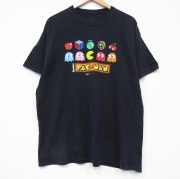 XL★古着 半袖 Tシャツ メンズ ゲーム パックマン コットン クルーネック 黒