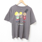 XL★古着 半袖 Tシャツ メンズ アニメ ニコロデオン ヘイアーノルド コットン クルーネック 濃グレー
