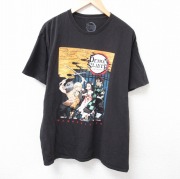 XL★古着 半袖 Tシャツ メンズ アニメ 鬼滅の刃 コットン クルーネック 黒