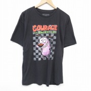 XL★古着 半袖 Tシャツ メンズ アニメ カートゥーンネットワーク おくびょうなカーレッジくん ーコットン クルーネック 黒