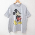 【商品名】 XL★古着 半袖 Tシャツ メンズ ディズニー ミッキー 大きいサイズ クルーネック 薄グレー 霜降り