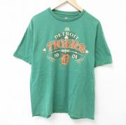 L★古着 マジェスティック 半袖 Tシャツ メンズ MLB デトロイトタイガース コットン クルーネック 緑 メジャーリーグ ベースボール 野球