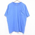 【商品名】 XL★古着 半袖 Tシャツ メンズ 無地 胸ポケット付き クルーネック 青 霜降り