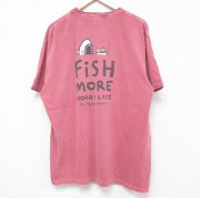 XL★古着 半袖 Tシャツ メンズ FiSH 大きいサイズ コットン クルーネック エンジ