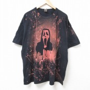 XL★古着 半袖 Tシャツ メンズ ホラー映画 スクリーム 大きいサイズ コットン クルーネック 黒 ブリーチ加工