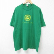 XL★古着 半袖 Tシャツ メンズ ジョンディア コットン クルーネック 緑