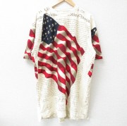 XL★古着 半袖 Tシャツ メンズ 星条旗 大きいサイズ ロング丈 コットン クルーネック 薄ベージュ