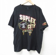 XL★古着 半袖 Tシャツ メンズ ワールドプロレスリング SUPLEX大きいサイズ クルーネック 黒