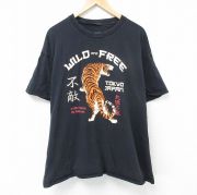 XL★古着 半袖 Tシャツ メンズ トラ 大きいサイズ コットン クルーネック 黒