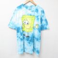 【商品名】 XL★古着 半袖 Tシャツ メンズ アニメ ニコロデン スポンジボブ 大きいサイズ コットン クルーネック 水色他 タイダイ