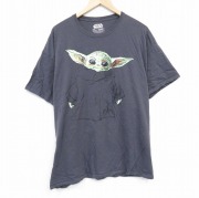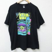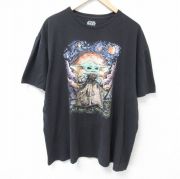 XL★古着 半袖 Tシャツ メンズ スターウォーズ ベビーヨーダ 大きいサイズ コットン クルーネック 黒