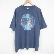 XL★古着 半袖 Tシャツ メンズ スターウォーズ ダースベイダー 大きいサイズ クルーネック 薄紺 霜降り