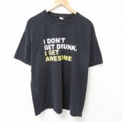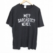 XL★古着 半袖 Tシャツ メンズ メッセージ コットン クルーネック 黒