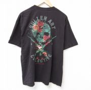 XL★古着 半袖 Tシャツ メンズ スカル コットン クルーネック 黒