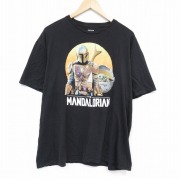XL★古着 半袖 Tシャツ メンズ スターウォーズ マンダロリアン グローグー 大きいサイズ コットン クルーネック 黒
