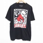 XL★古着 半袖 Tシャツ メンズ アングリーバード コットン クルーネック 黒