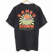 XL★古着 半袖 Tシャツ メンズ ラーメン コットン クルーネック 黒