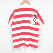 L★古着 半袖 Tシャツ メンズ ウォーリーをさがせ コットン クルーネック 白他 ボーダー