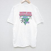 XL★古着 半袖 Tシャツ メンズ サッカー 大きいサイズ コットン クルーネック 白