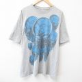 XL★古着 半袖 Tシャツ メンズ スカル 大きいサイズ クルーネック グレー 霜降り 25jun28 中古