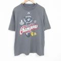 XL★古着 半袖 Tシャツ メンズ NHL シカゴブラックホークス コットン クルーネック 濃グレー アイスホッケー