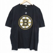 XL★古着 半袖 Tシャツ メンズ NHL ボストンブルーインズ 大きいサイズ コットン クルーネック 黒 アイスホッケー