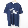 XL★古着 半袖 Tシャツ メンズ ミラーライト コットン クルーネック 紺 ネイビー 25jul02 中古