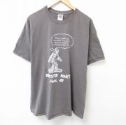 XL★古着 半袖 Tシャツ メンズ モンスター コットン クルーネック 濃グレー