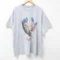 XL★古着 半袖 Tシャツ メンズ 鳥 大きいサイズ クルーネック グレー 霜降り 25jul04 中古